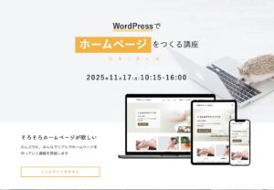 WordPressで ホームページ をつくる講座 湘南/茅ヶ崎 2025年11月17(月)10:15-16:00 そろそろホームページが欲しい 久しぶりに、みんなでリアルでホームページを作っていく講座を開催しま […]
